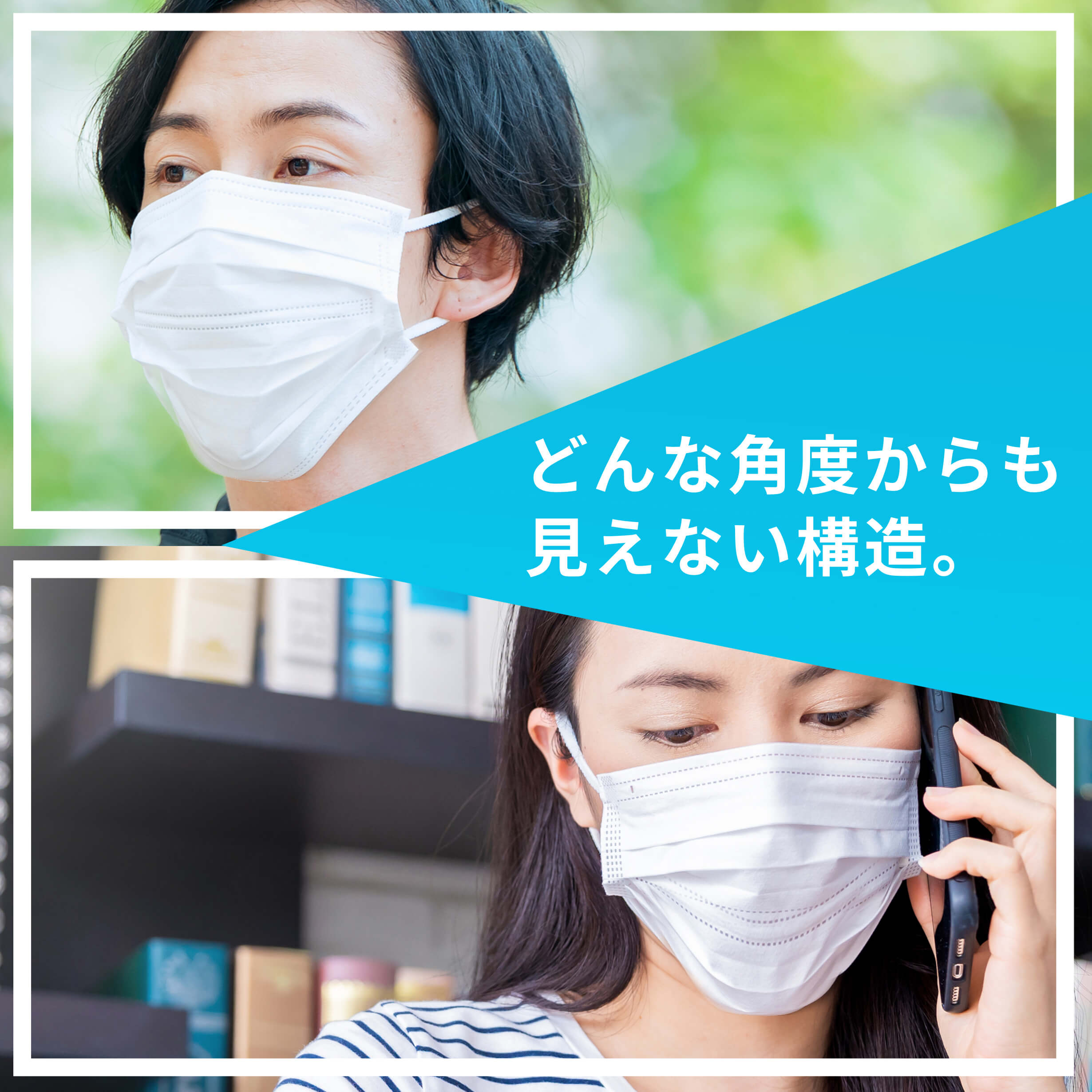 さらには、マスクスペーサーがついている事は、周りからは分からない構造のため、女性にも安心の構造です。