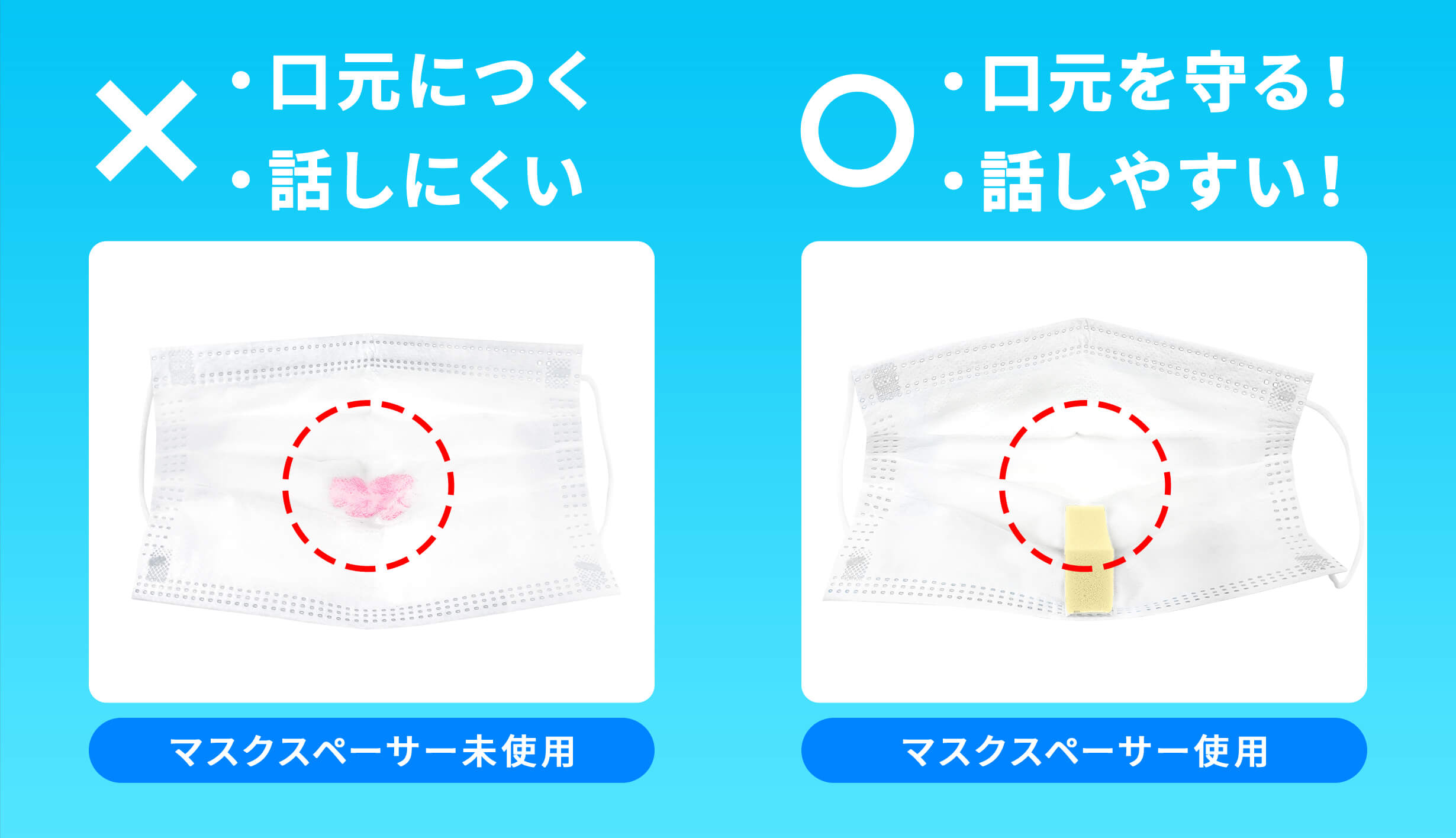 通気性も上がり、呼吸や会話もしやすくなりますので、息苦しさが解消。