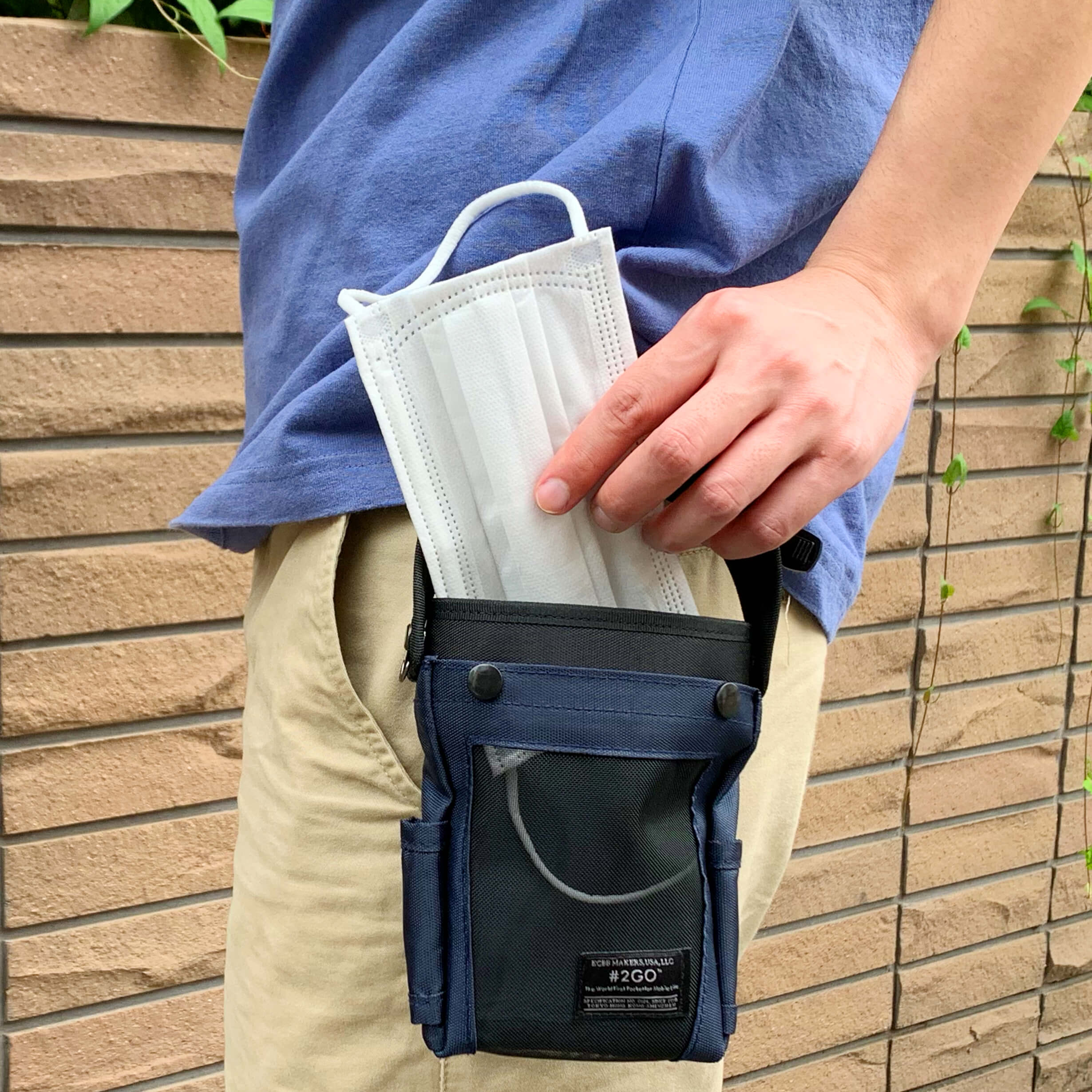 マスクスペーサーが付いたマスクをちょっと取り外して、化粧直しをする際など、「マスクの置き場どうしよう?」そんなときに、#2GO(トゥーゴー)の中にマスクを「サッ」としまうことができます。