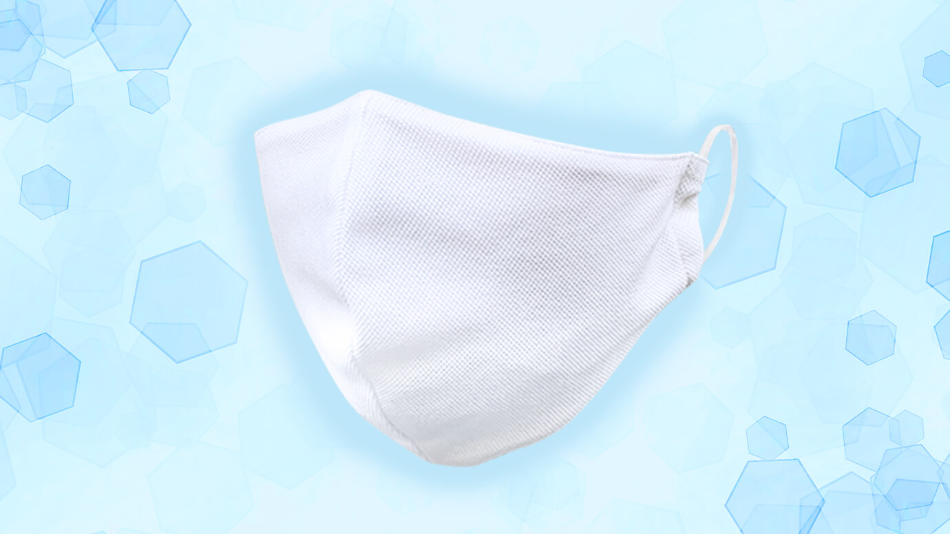 水に溶解する際に熱を奪う機能により、人間が発する汗(水分)、不感蒸泄(蒸気)を吸収し、マスクの繊維内温度が下がります!